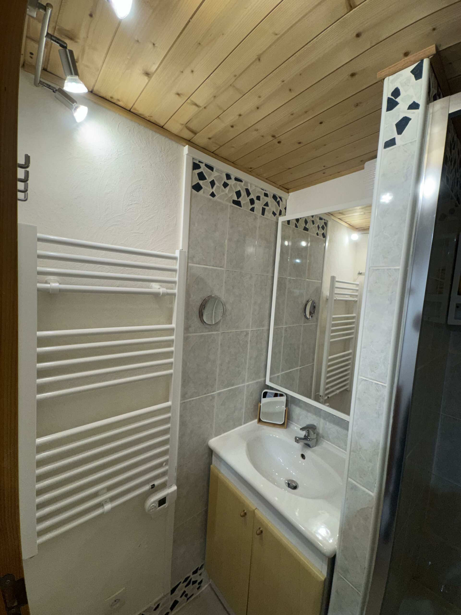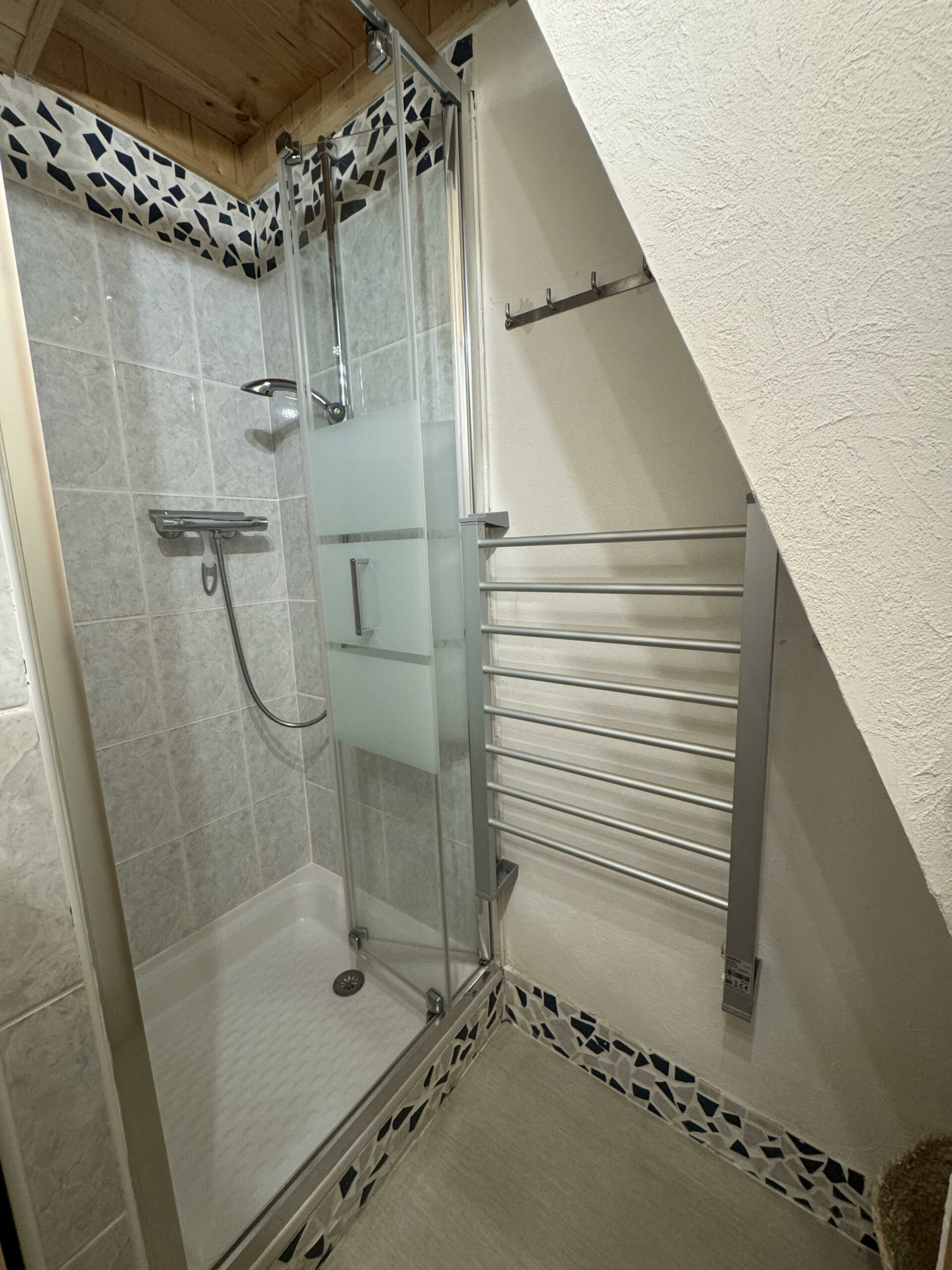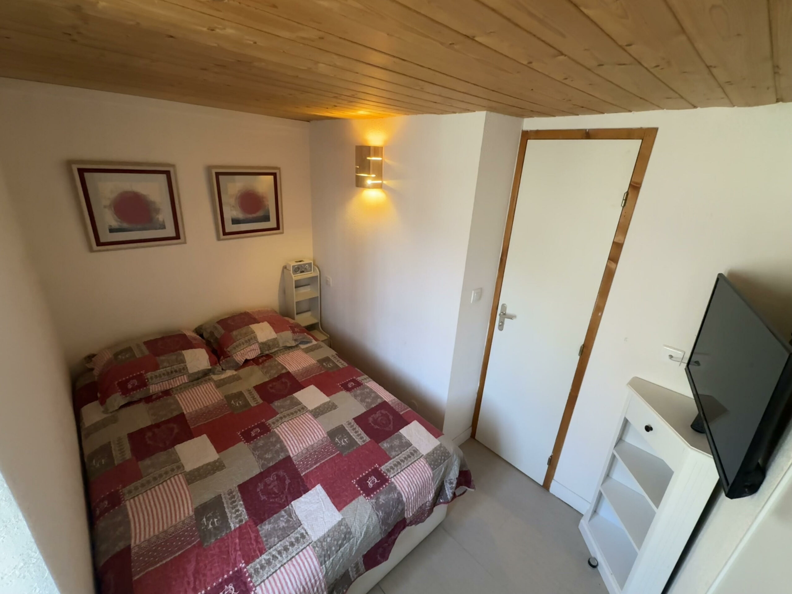 Une chambre parentale avec lit 2 personnes 140×190 et télévision écran plat ; une salle d’eau sur le palier.